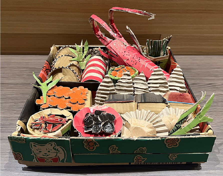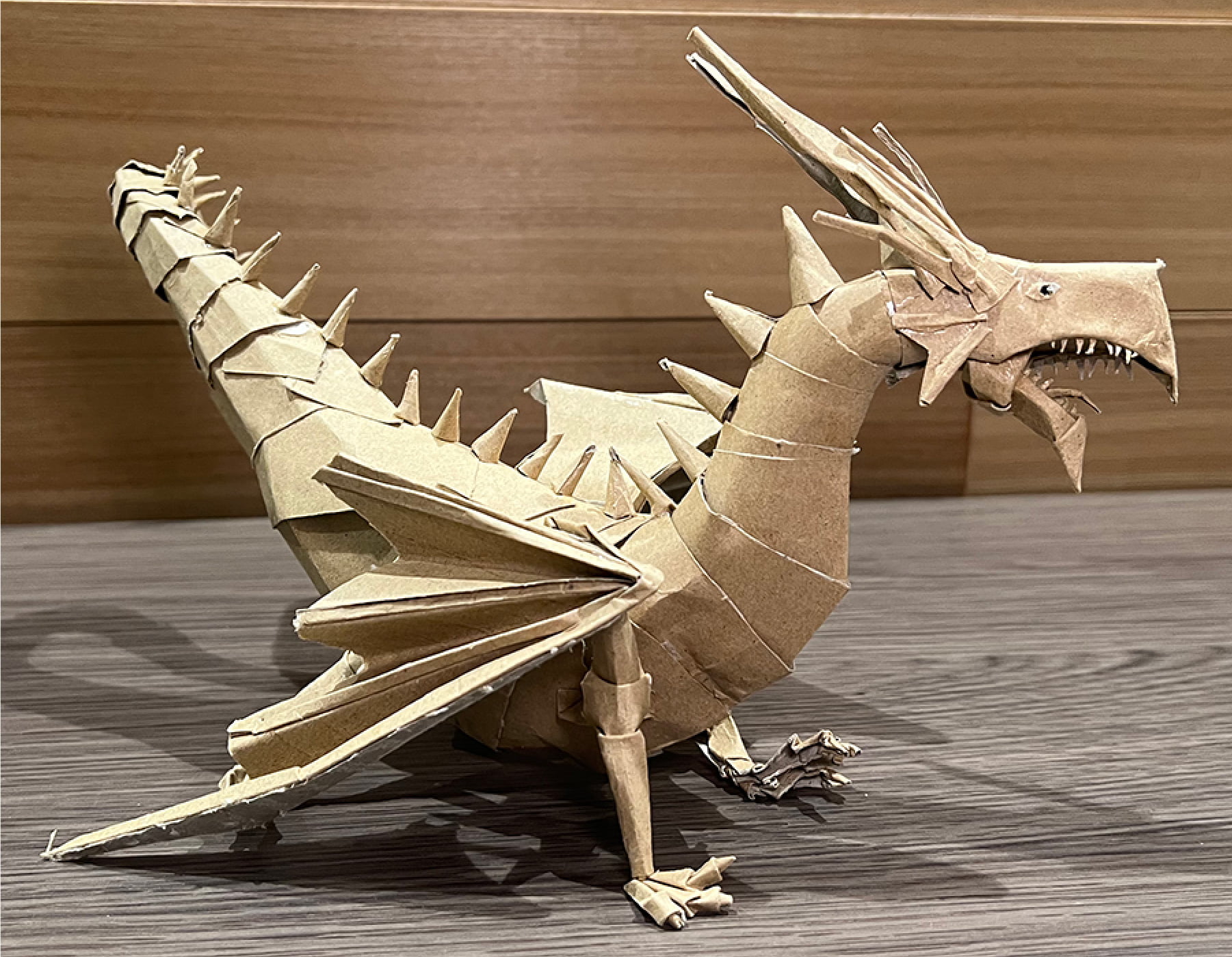 - 貝の部分に実際に使われていた段ボールを活かしている点が、胴体とのコントラストになっていて魅力的でした。造形力やユニークさも十分で、総合的にとても優れた作品だと感じました。